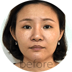面部扁平凹陷、眼袋大、胸部扁平